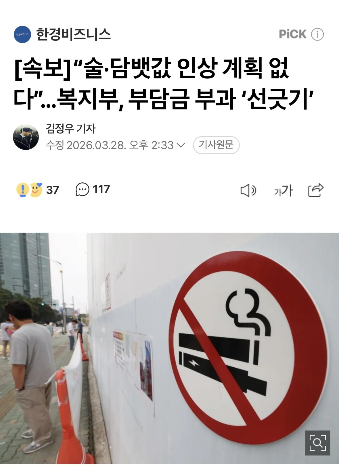 [속보]“술·담뱃값 인상 계획 없다”…복지부,...