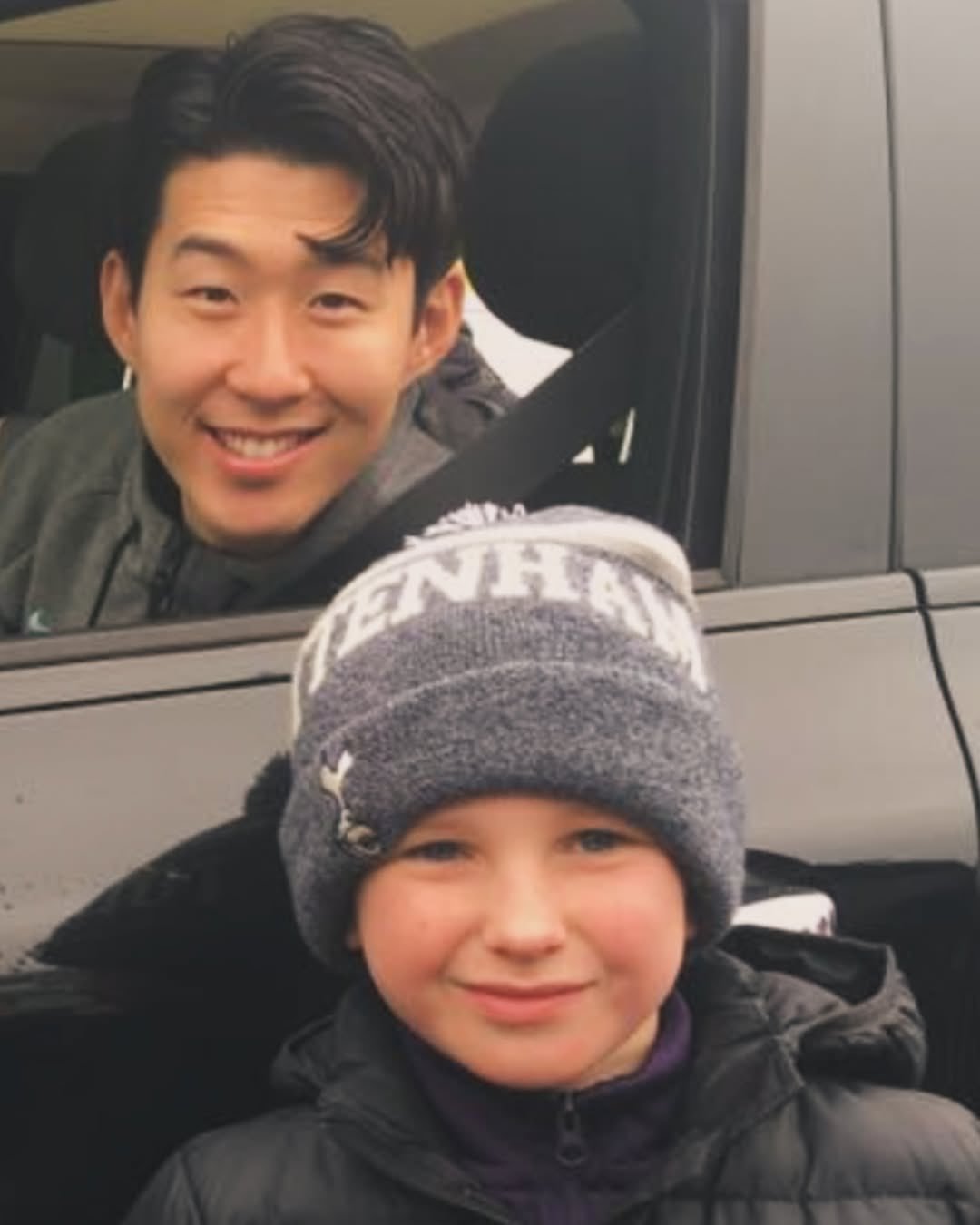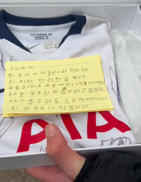 처음 사 모은 토트넘 유니폼과 선수들로부터 직접 받은 싸인 저지를 한글 편지와 함께 손흥민에게 전달했다고 한다.