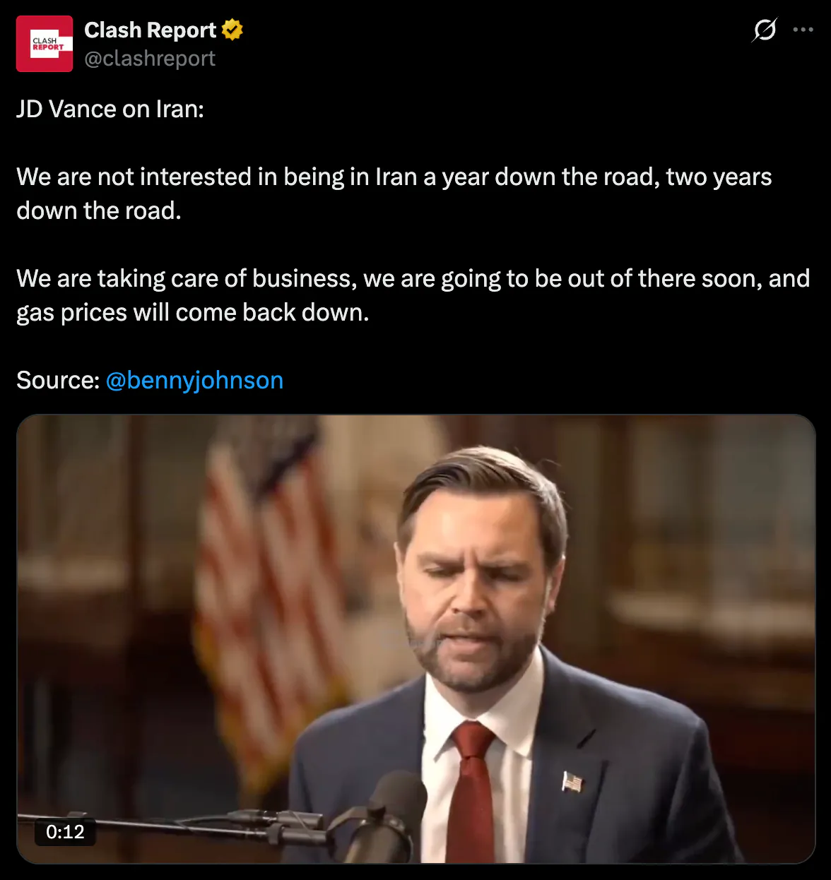 지금의 현상은 결국 단기 분쟁으로 끝날 이번 사태에 대한 매우, 매우 일시적인 반응일 뿐입니다. 대통령께서도 이 점을 아주 명확히 해오셨다고 생각합니다. 우리는 1년 뒤, 2년 뒤에도 이란에 머무르는 것에는 관심이 없습니다.