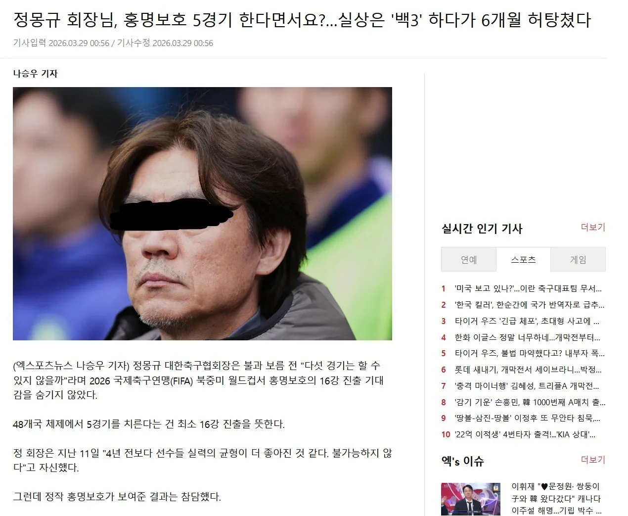 정몽규 저격 기사 떴네 ㅋㅋㅋㅋ