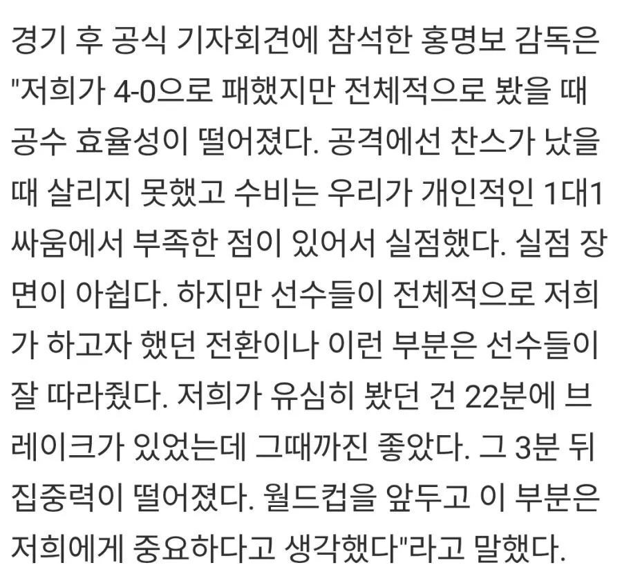 홍명보, 이제는 3분 쉬는 시간도 핑계네