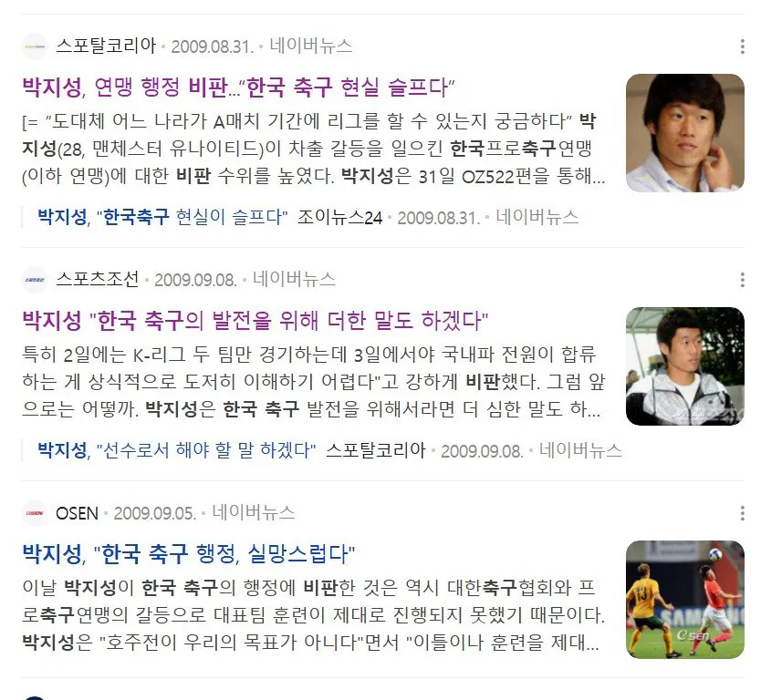 박지성도 선수 때 국내축구 깠다니 신기네