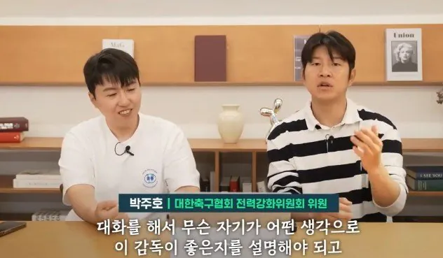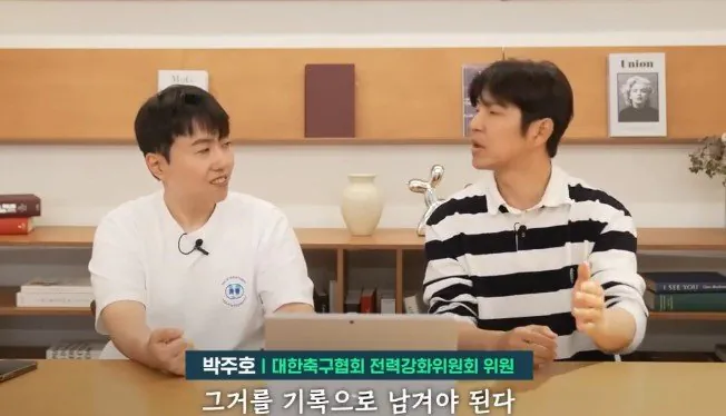 옛날처럼 모든 토론 과정을 기록으로 남기고 공개해야 한다는 박주호의 생각 클린스만을 뽑을 당시 반대의견이 얼마나 많았는지 알 수 없었던 점이 문제라고 지적 감독 선임, 전술 변경 같은 주요 결정들이 투명하게 공개되지 않는 게 문제 이렇게 하면 축구협회 행정가들의 능력도 정확하게 평가할 수 있다는 논리 과거 승부조작 사건도 누가 먼저 제안했고 누가 추진했는지 기록이 남았어야 한다고 생각 성공하든 실패하든 상관없이 투명한 시스템과 프로세스가 핵심이라는 게 박주호의 일관된 주장