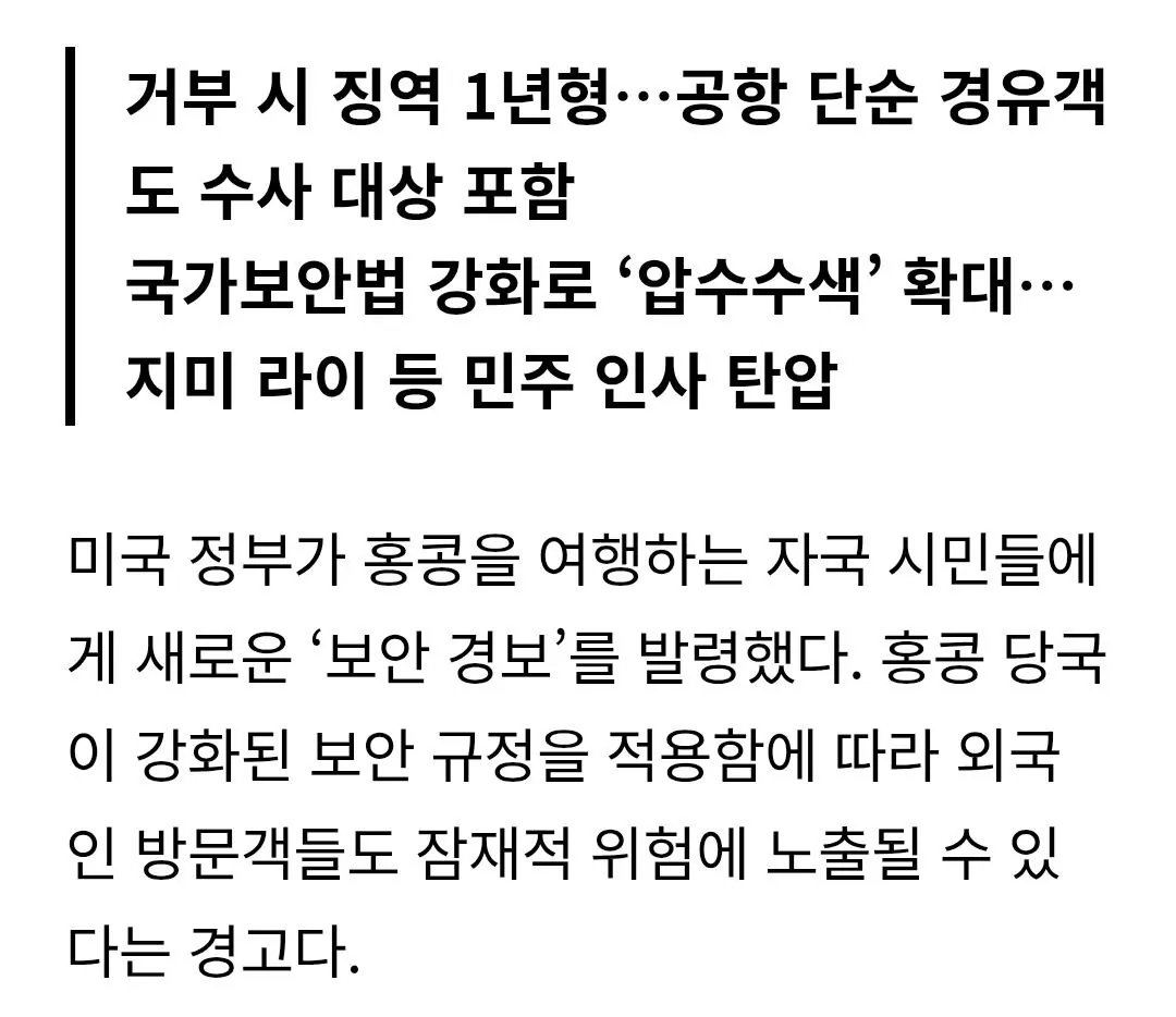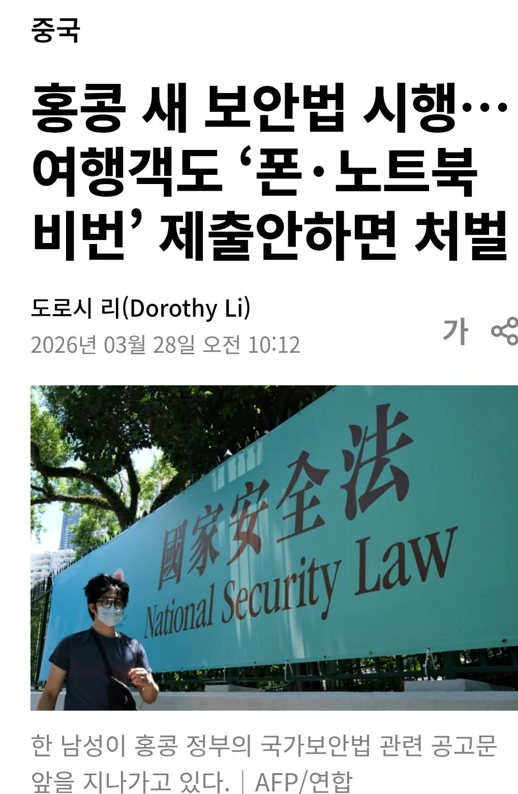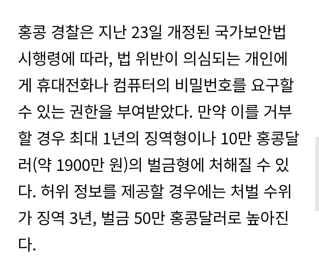 홍콩 새 보안법 시행…여행객도 ‘폰·노트북 비번’ 제출안하면 처벌