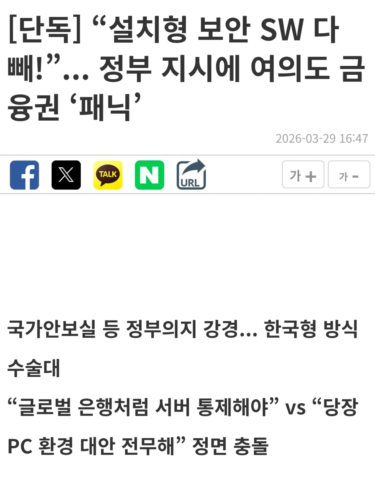 금융권 보안 프로그램 정부 지시로 대량 제거 ...