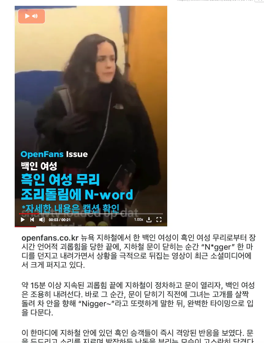 백인 여성은 지하철 안에서 흑인들에게 공격을 당한 무고한 피해자가 아니라, 시비가 털린 끝에 지하철 긴급정지 레버를 당기려 한 사람인 것이다.