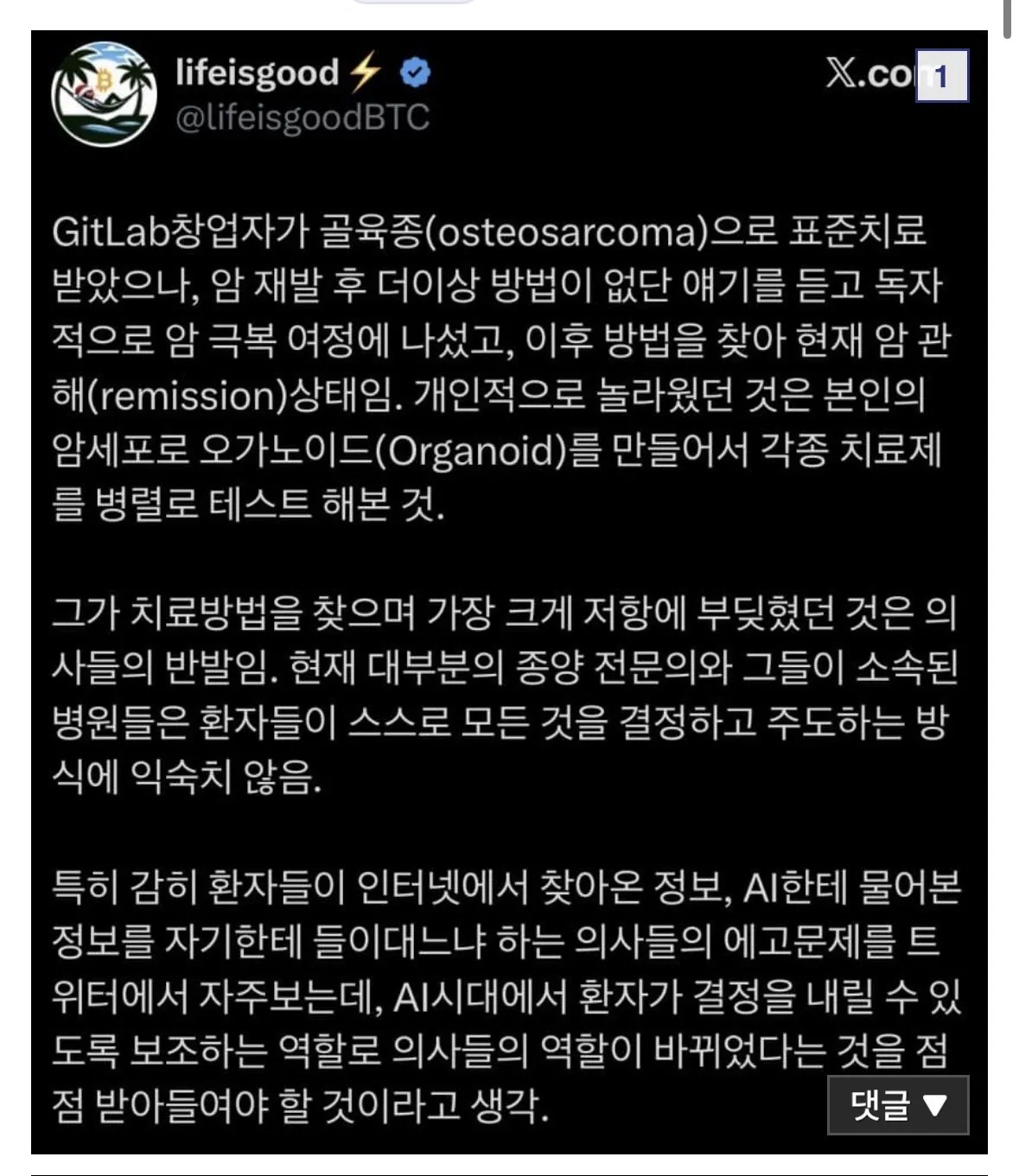 AI 쓴 깃랩 CEO가 암백신까지 만들어버렸다고