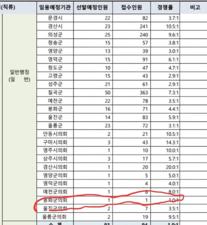 봉화군 의회 9급 공채를 보니 1명 모집에 지원자도 겨우 1명이라고 하네 ㅋㅋ 이건 떨어질래야 떨어질 수가 없는 상황이다 ㅋ지금쯤 술 한잔 걸치고 있지 않을까 싶은데 ㅋㅋ