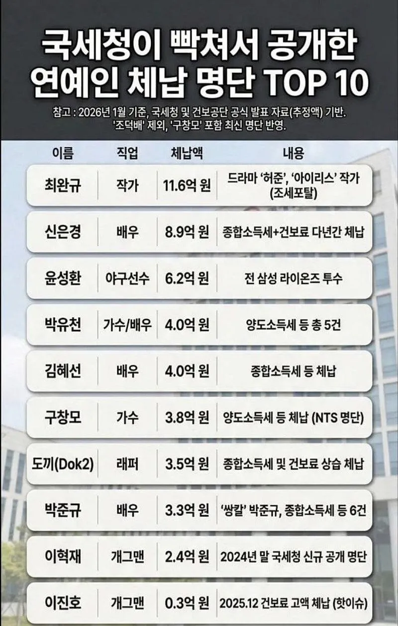 연예인 세금 체납 명단 공개 근데 1위 압도적...