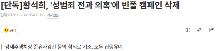 성범죄 의혹 황석희, 빈폴 광고 급속 제거