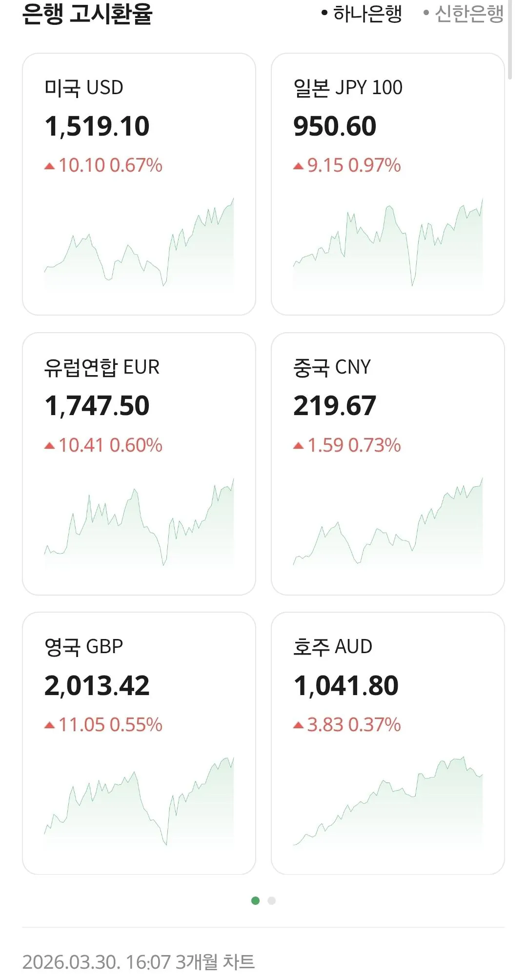 파운드가 또 2천원대 올라갔네