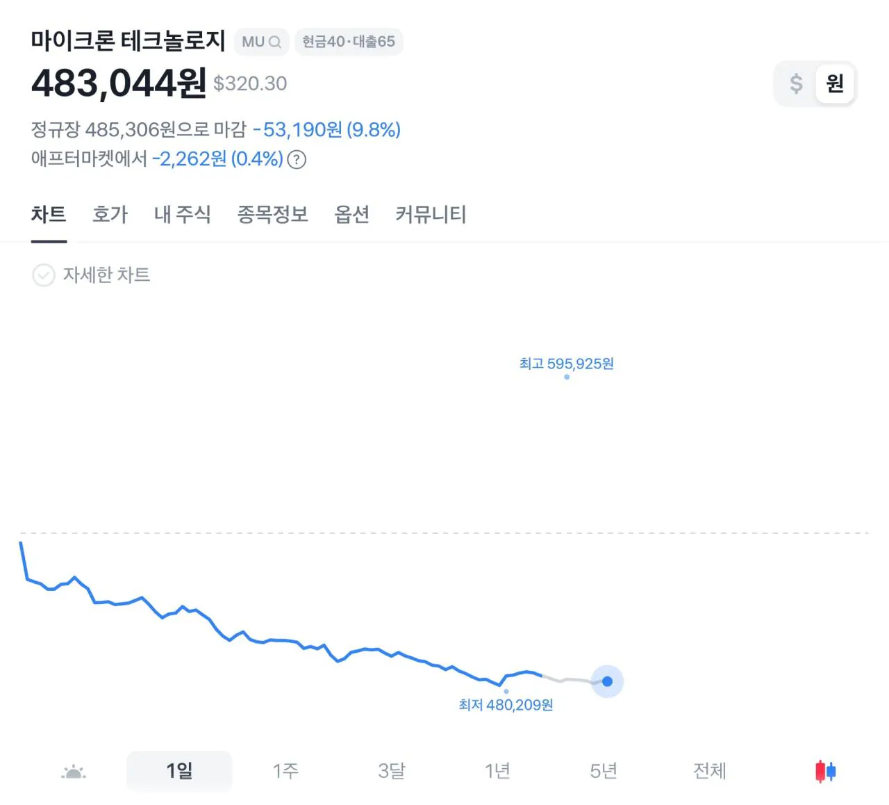 미국 반도체 지금도 떨어지는 중