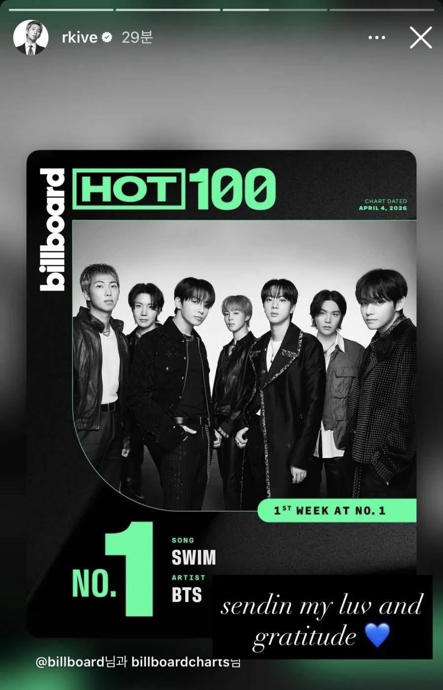 BTS 드디어 핫100 정상 달성
