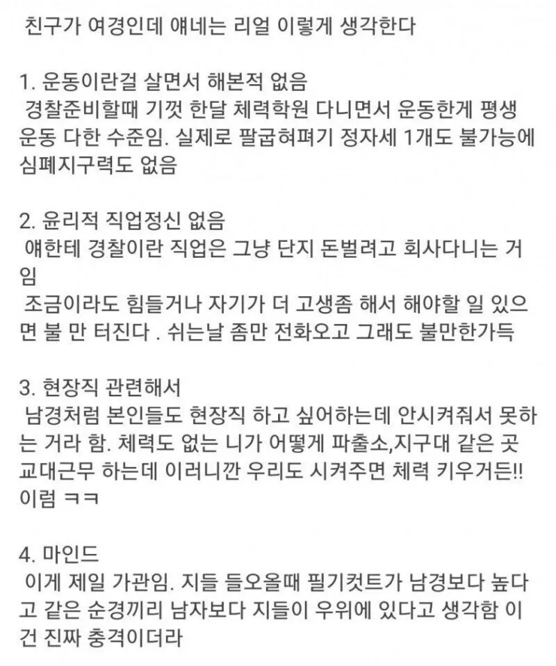 같은 여경이 본 여경의 진짜 얘기