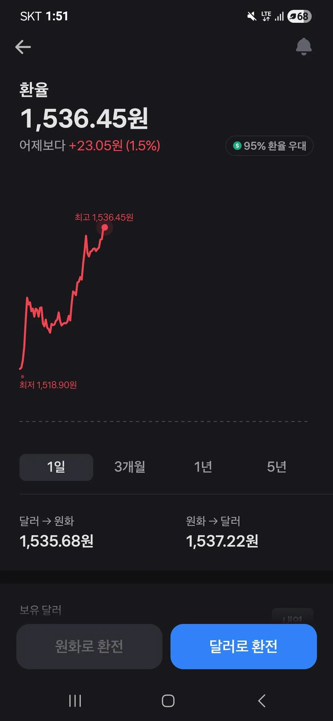 (속보) 원달러 환율 1536.45 ㄷㄷㄷ