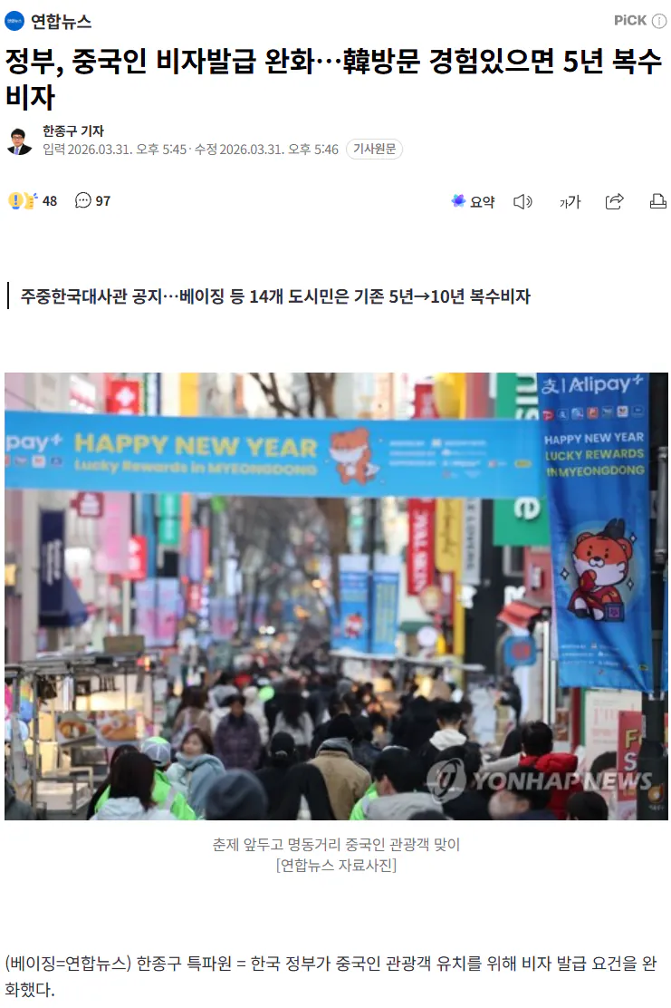 (속보) 정부, 중국인 비자발급 완화…韓방문 ...