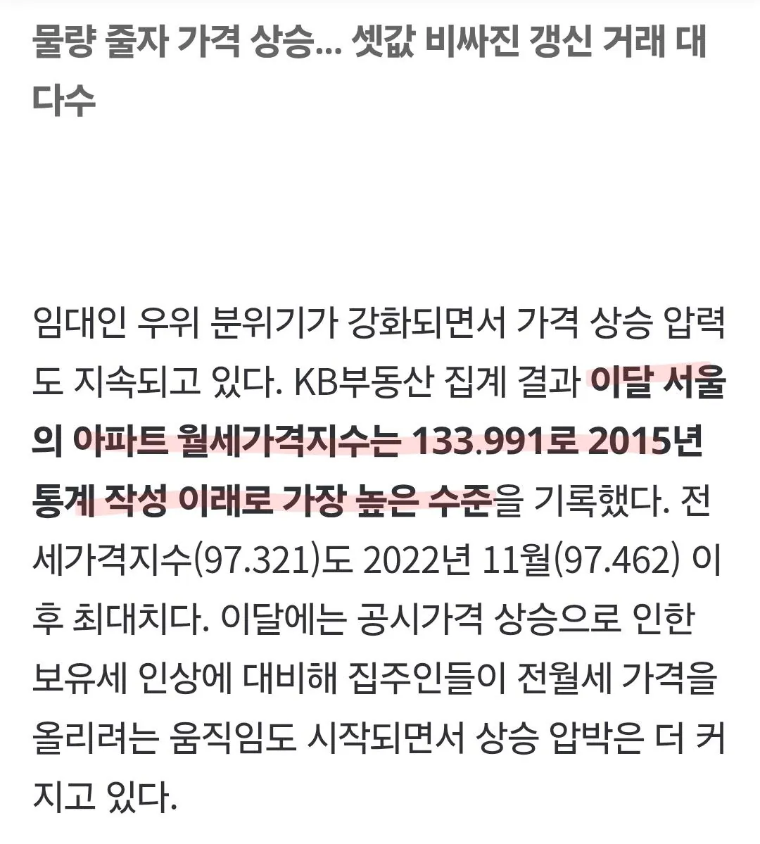 전세가 사라지니까 월세는 오를 수밖에 없네..