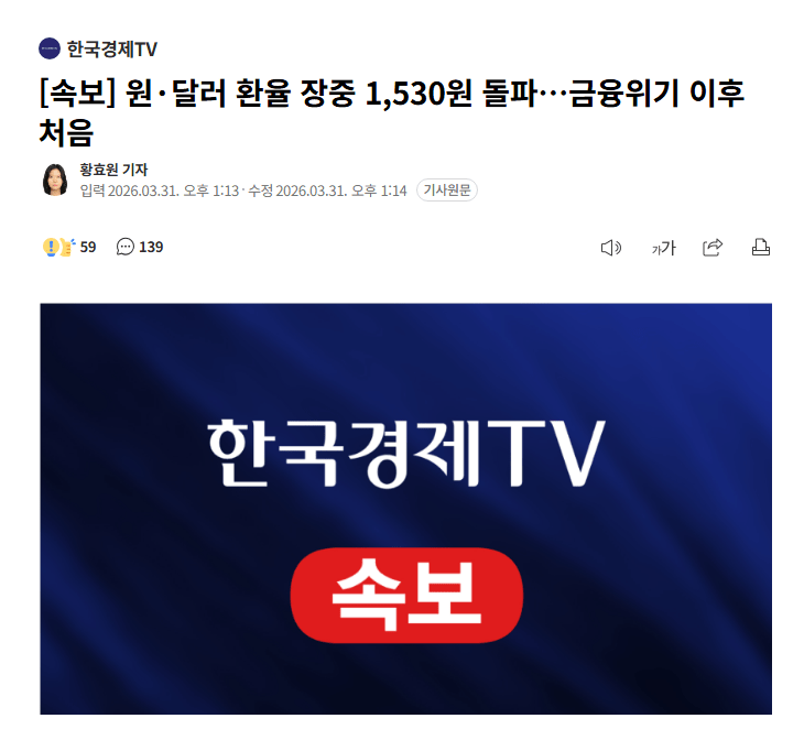 환율이 1530원까지 떨어졌네 금융위기 이후 처음이라고