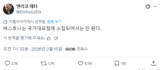 만약 이 퇴장이 경기 결과를 바뀌게 한다면 진짜 이탈리아에서 여론이 터질 것 같은데
