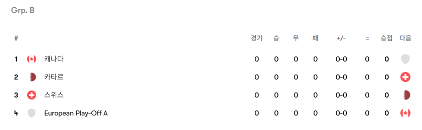 이탈리아가 보스니아한테 처지면서 한 조에 캐나다, 카타르, 스위스, 보스니아가 모두 들어가게 됐네ㄷㄷㄷ 진짜 악의 조 완성
