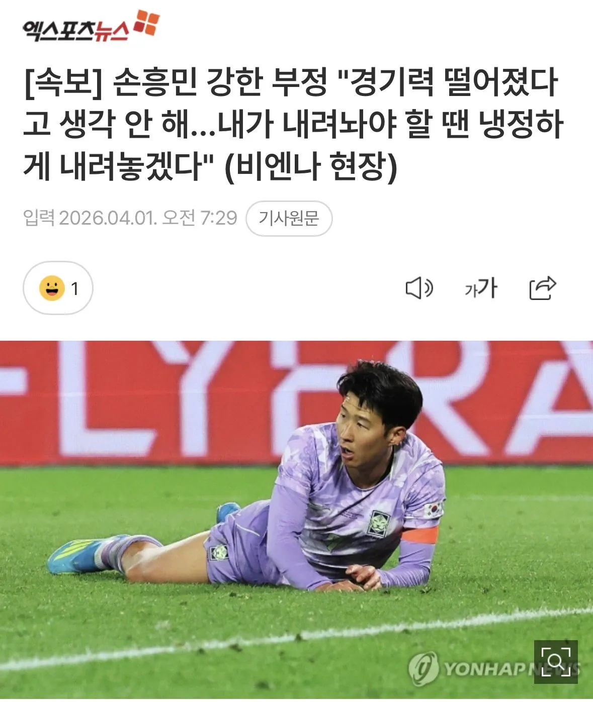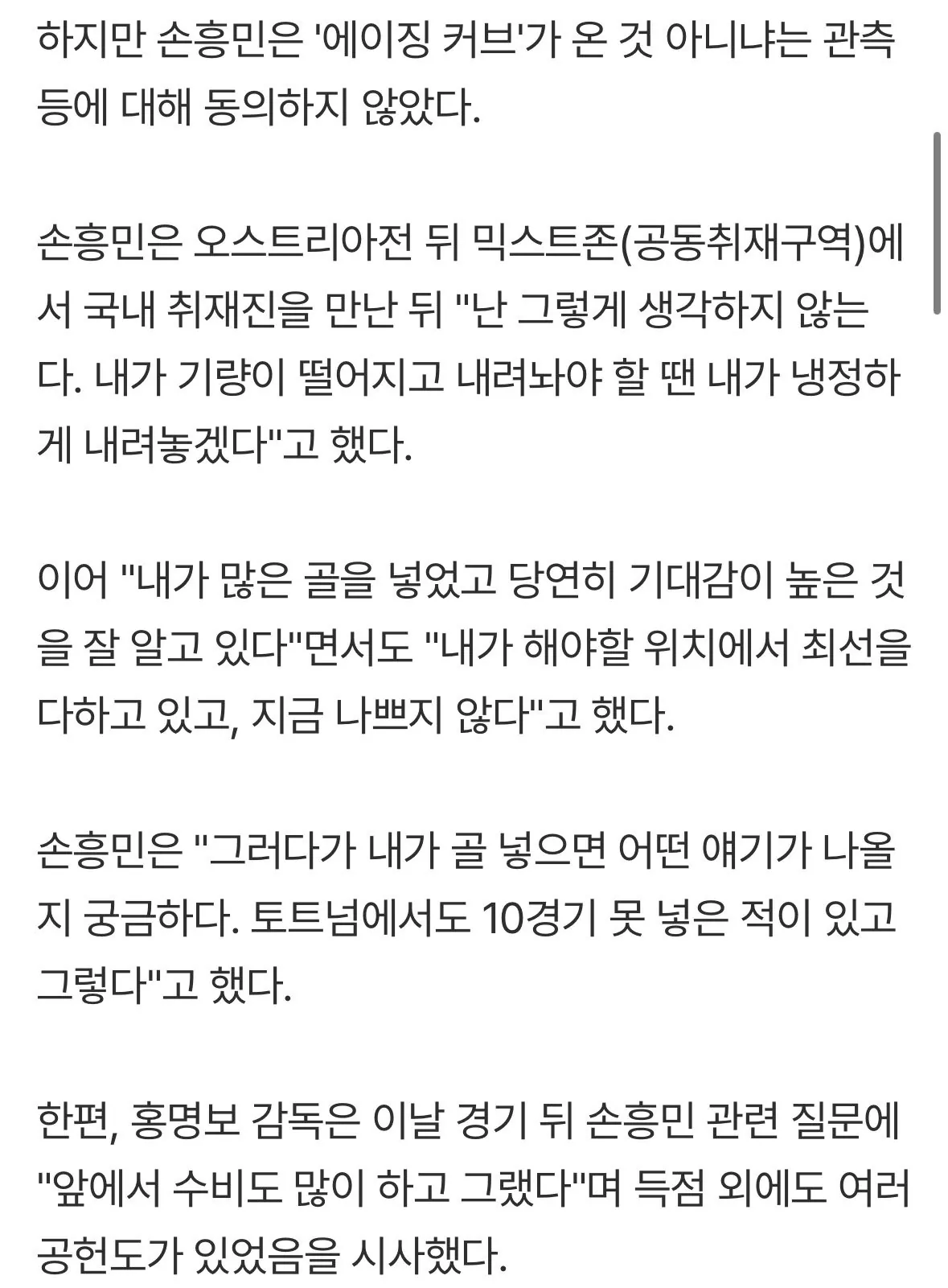 손흥민 강한 부정 "경기력 떨어졌다고 생각 안 해…내가 내려놔야 할 땐 냉정하게 내려놓겠다"