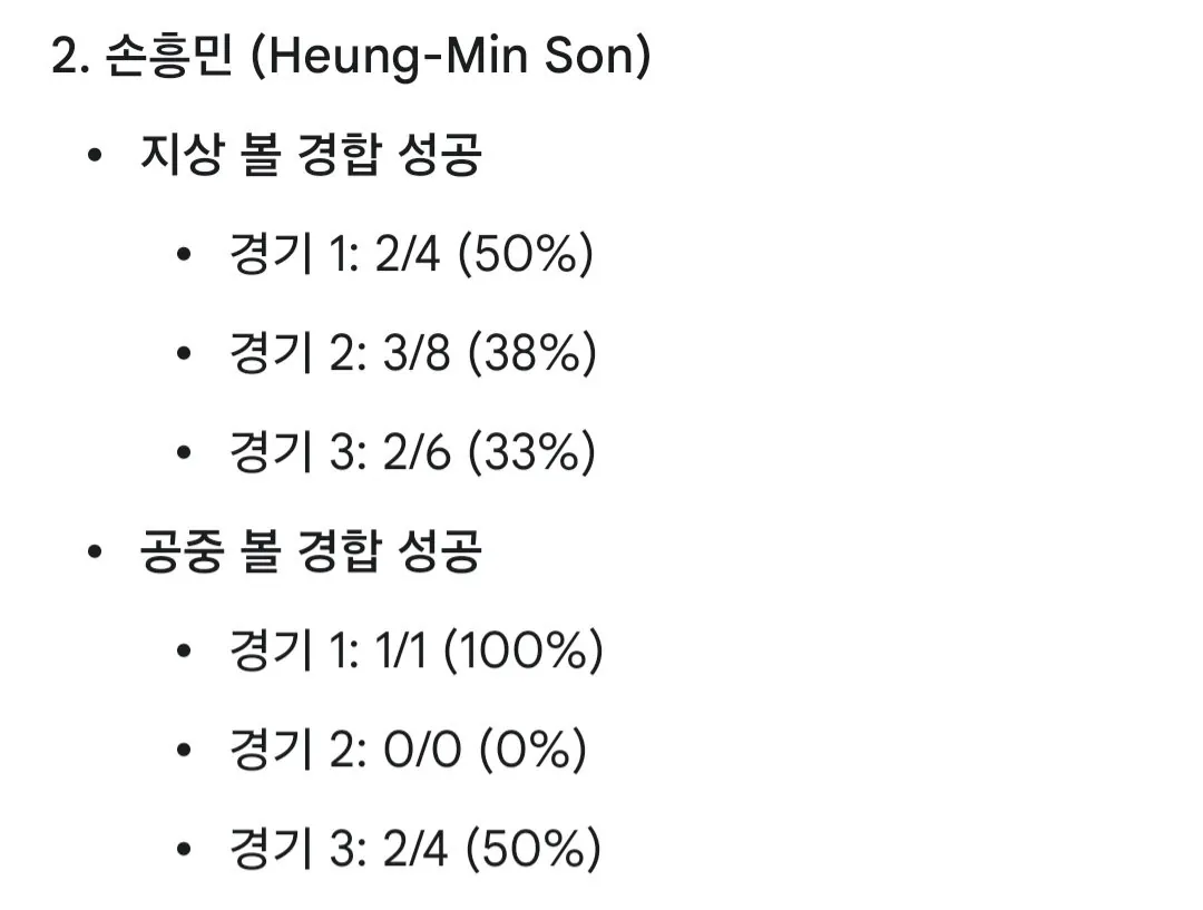 경합능력은 둘 다 큰 차이가 없음. 굳이 따지면 경합 스탯은 오히려 손흥민이 더 높게 나옴.