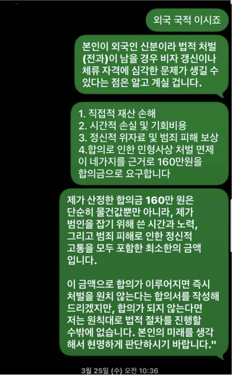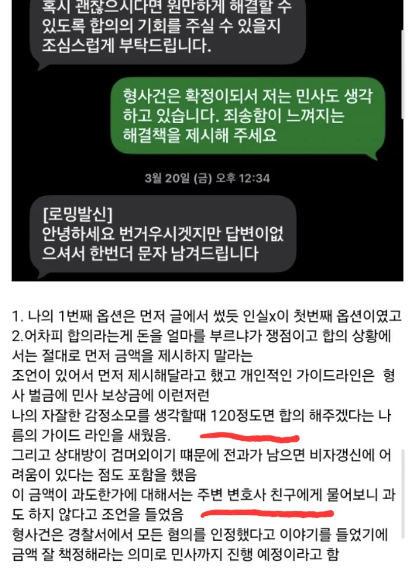 변호사 조언을 받아 120만원에서 160만원으로 올렸대정말 그 정도가 적절한 건가 싶은데또 하나 의문인 건 형사합의하면 처벌 면제는 기본인데왜 보상금 계산할 때 또 따로 산정하는 건지무인 아이스크림점 30배 배상 청구 사건 떠올리니까비슷한 패턴으로 터무니없는 금액을 정하는 건 아닌지 모르겠네
