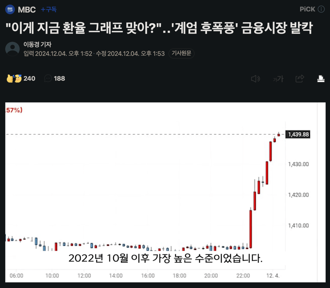 10월엔 1,439원이었는데 어제는 1,540원이네. 계엄 때문에 금융시장이 이렇게까지 흔들린다니. ㅋㅋㅋㅋㅋㅋㅋㅋㅋㅋ