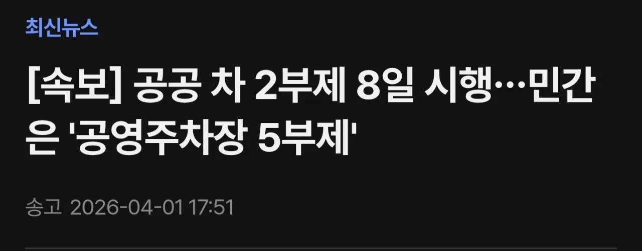 공공 차량 2부제가 이제 시작이네