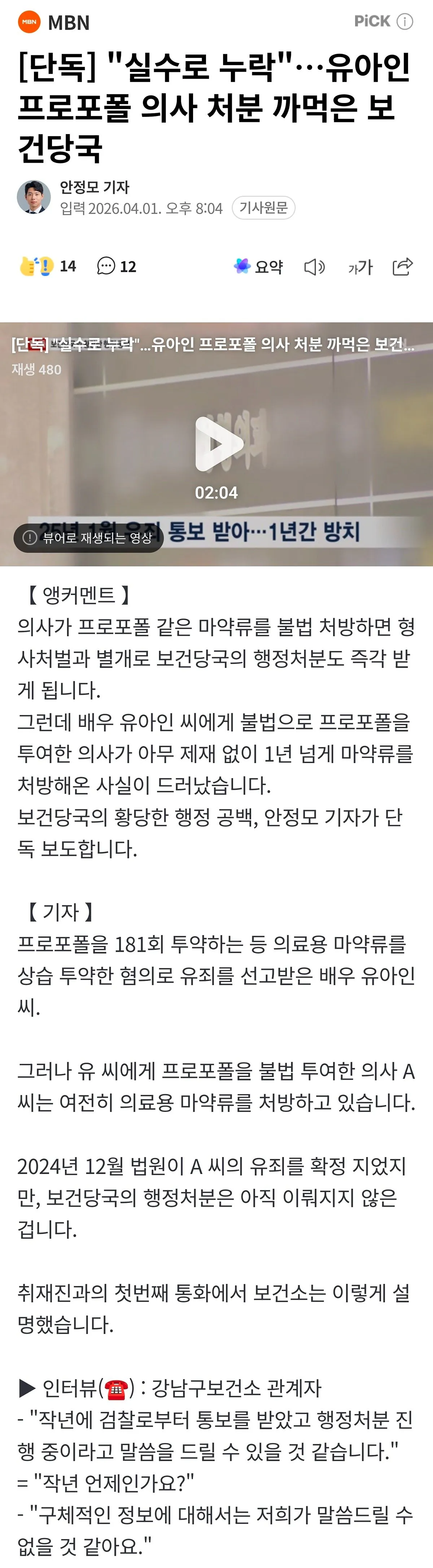 [단독] "실수로 누락"…유아인 프로포폴 의사 처분 까먹은 보건당국
