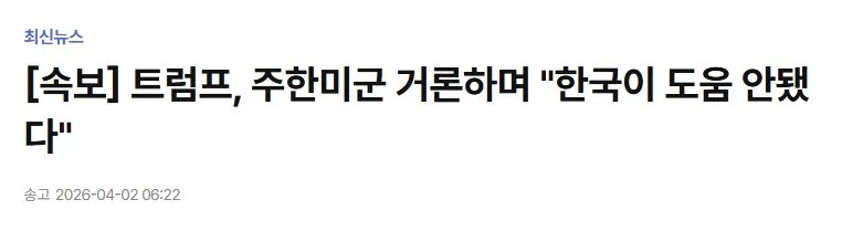 주한미군 거론하며 한국 까대는 트럼프 발언