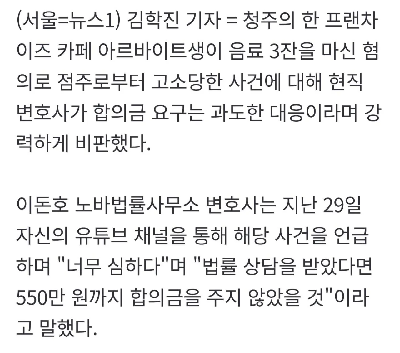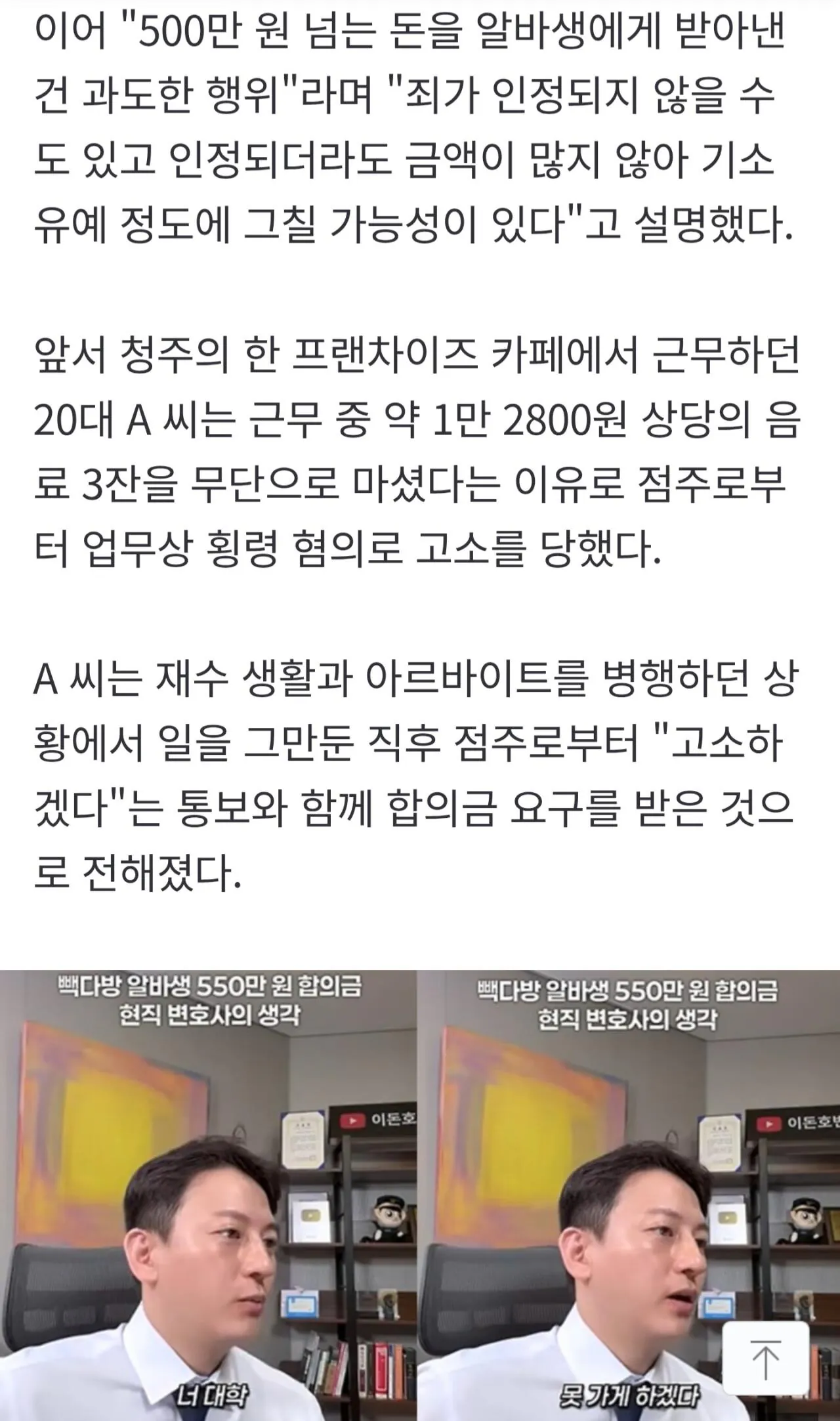 변호사는 점주의 공갈과 협박을 지적했으나 경찰은 알바생 상대 강요·협박 혐의를 무혐의로 처리했다대신 알바생의 횡령 혐의는 있다고 보며 검찰에 보완수사를 의뢰한 것으로 파악된다