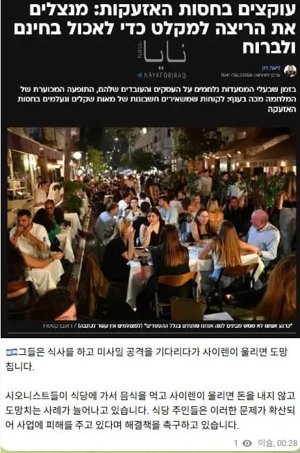 이스라엘 음식점 손님들 밥값 떼임 사태