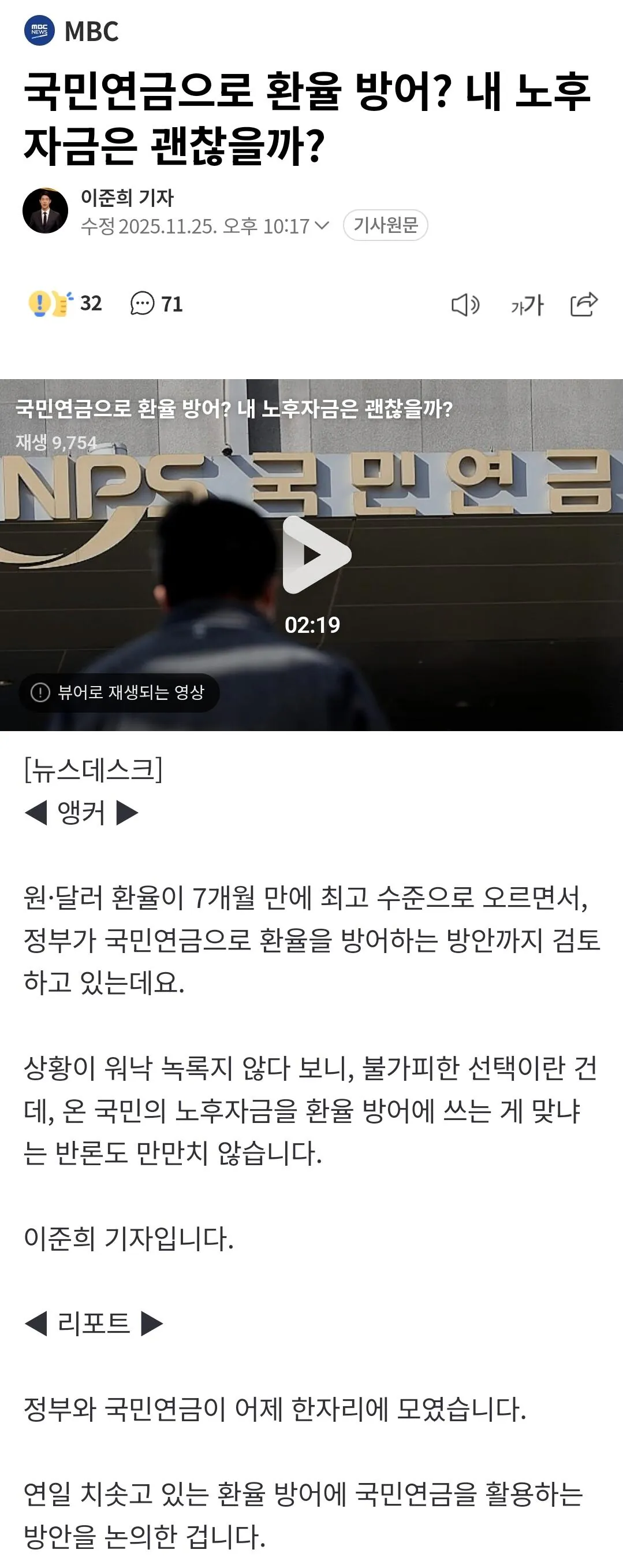 상황이 심각한건 MBC도 환율방어에연금투입을 하는 걸 우려할 정도