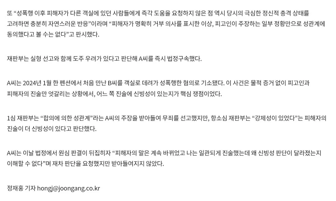 펜션서 처음 만난 여성 성폭행 혐의... 무죄에서 징역형으로 뒤집힌 이유