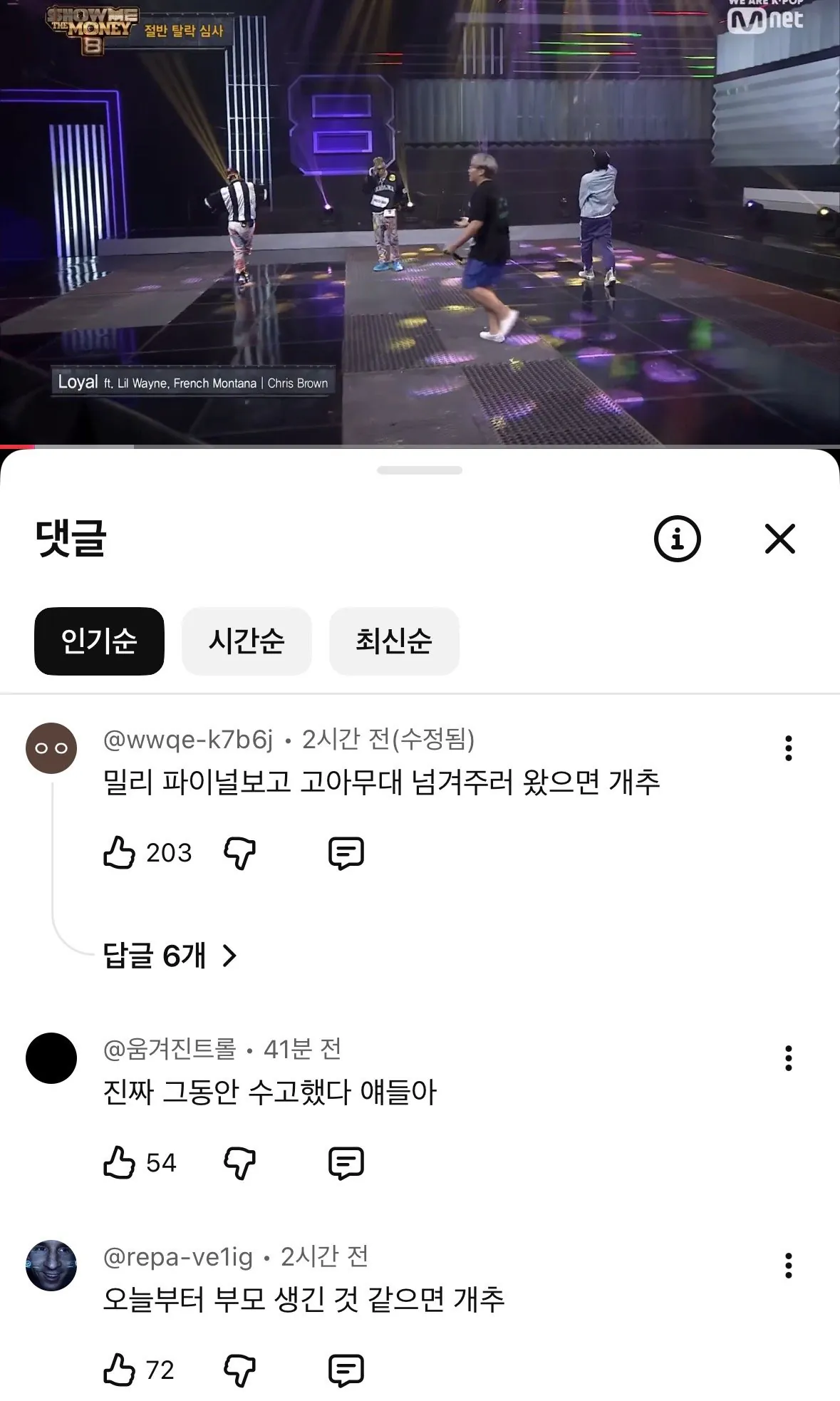 쇼미 파이널 무대 댓글 장난 아니네 ㅋㅋ