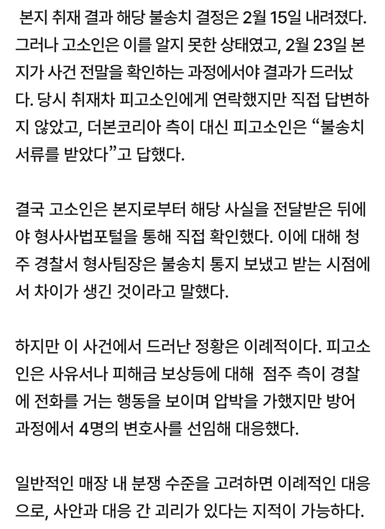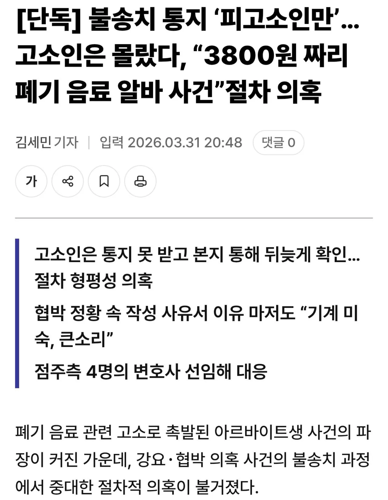 이번 사건 보니까 경찰 부당 수사에 대항할 방법이 없어지는 중인 것 같네. 검찰이 폐지되고 보안수사권도 없어져서 경찰을 견제할 기관이 진짜 없어진 거다.앞으로 경찰 만날 땐 꼭 변호사 데려가야 할 것 같다. 근데 진짜 문제는 이 청주 알바생처럼 변호인비 낼 형편도 안 되는 사람들이 죄다 피해를 보는 거지.