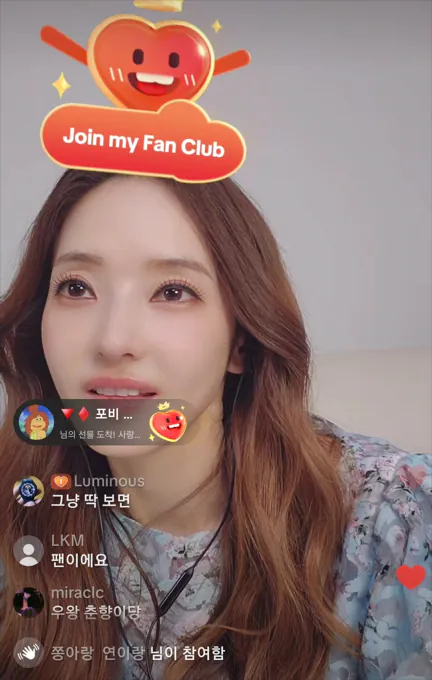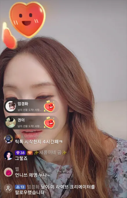 틱톡의 세계에 발을 들인 한채영이 라이브 방송을 시작함