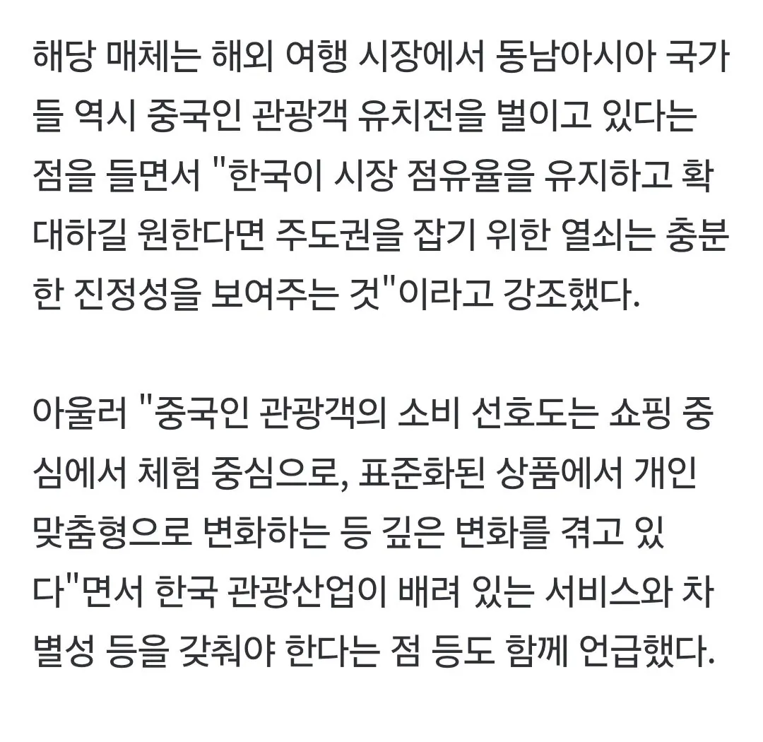 중국 언론의 따끔한 지적: 관광객 받으려면 진...