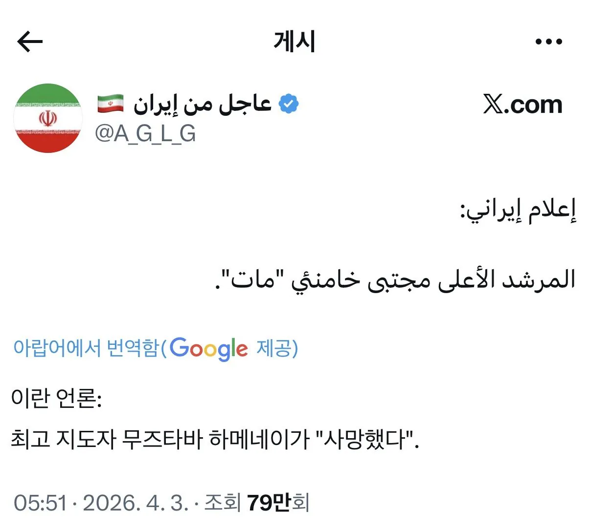 하메네이 측근 급보 떴어
