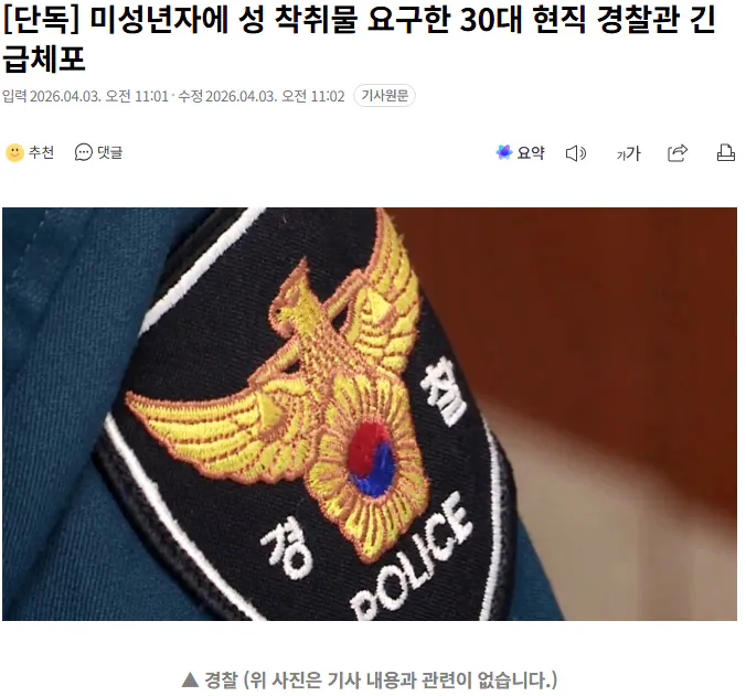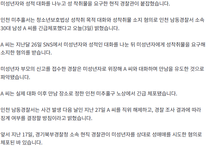 [단독] 미성년자에 성 착취물 요구한 30대 현직 경찰관 긴급체포