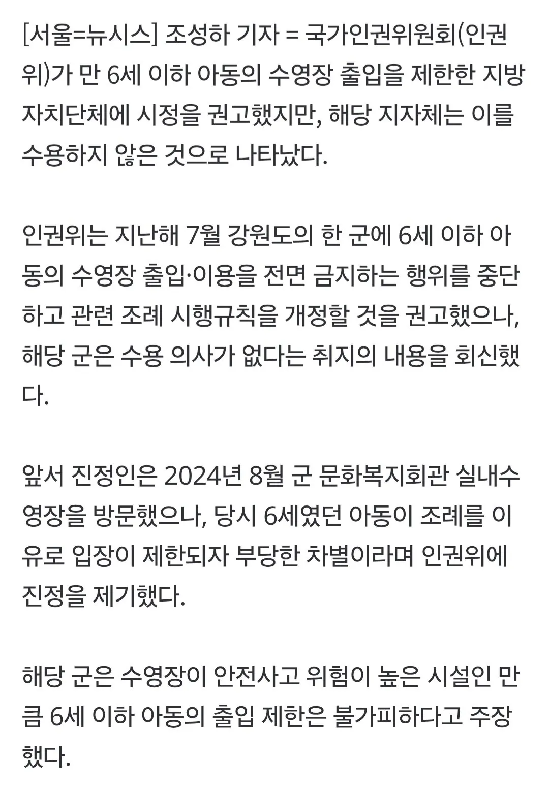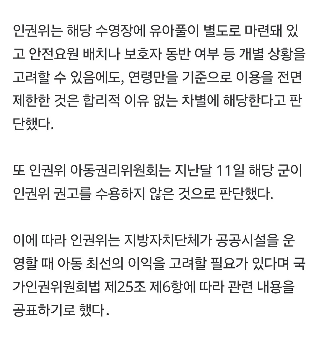 어린이 수영장 진입금지, 인권위도 차별이라 본다