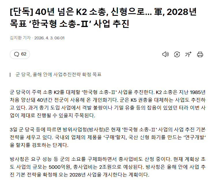 K2 소총 드디어 신형으로 교체한다고?
