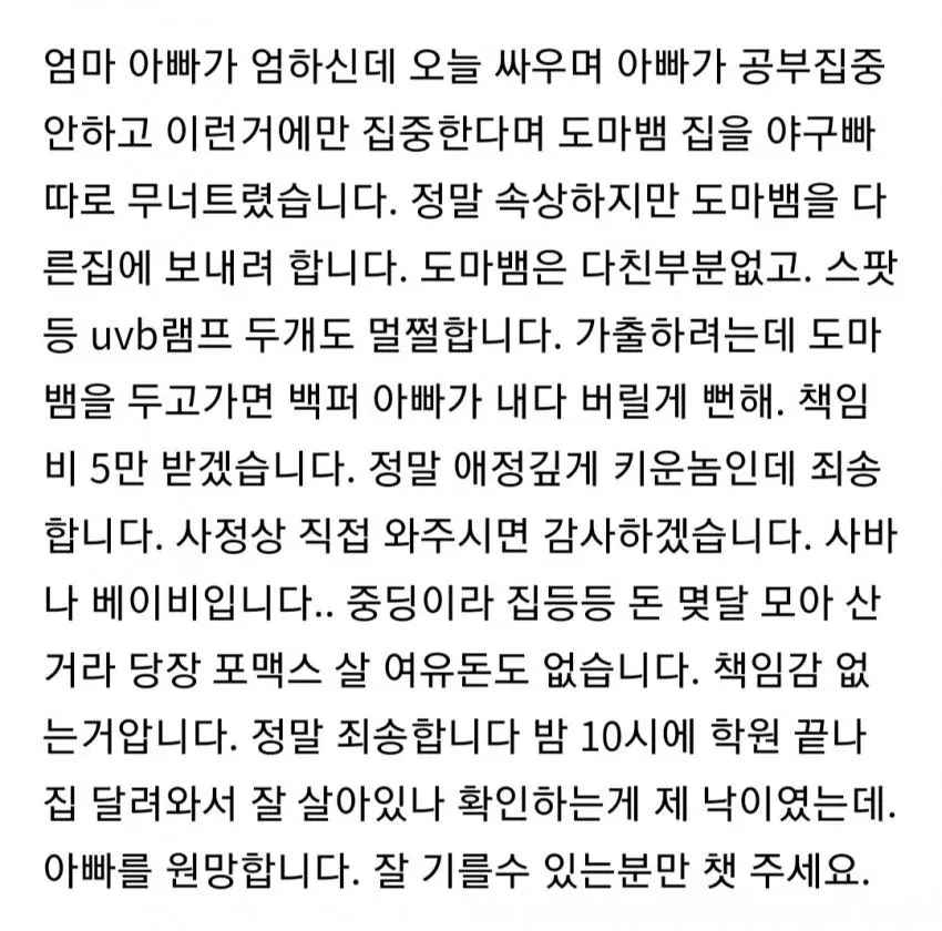 중학생인데 도마뱀까지 분양하네