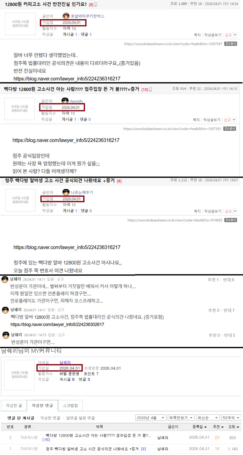 4월1일 오후 2시 전후로 거의 똑같은 형식의 글들이 올라왔더라.