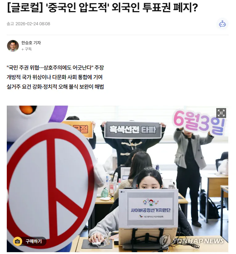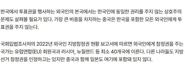 지방선거 투표권을 가진 외국인들을 보니 중국인이 정말 많다고 함. 한국어를 하는 중국인부터 일반 중국인, 대만인까지 전부 합치면 투표권 있는 외국인 10명 중 거의 9명이 중국과 관련된 국적이라고. 이게 맞나 싶네ㅋㅋ