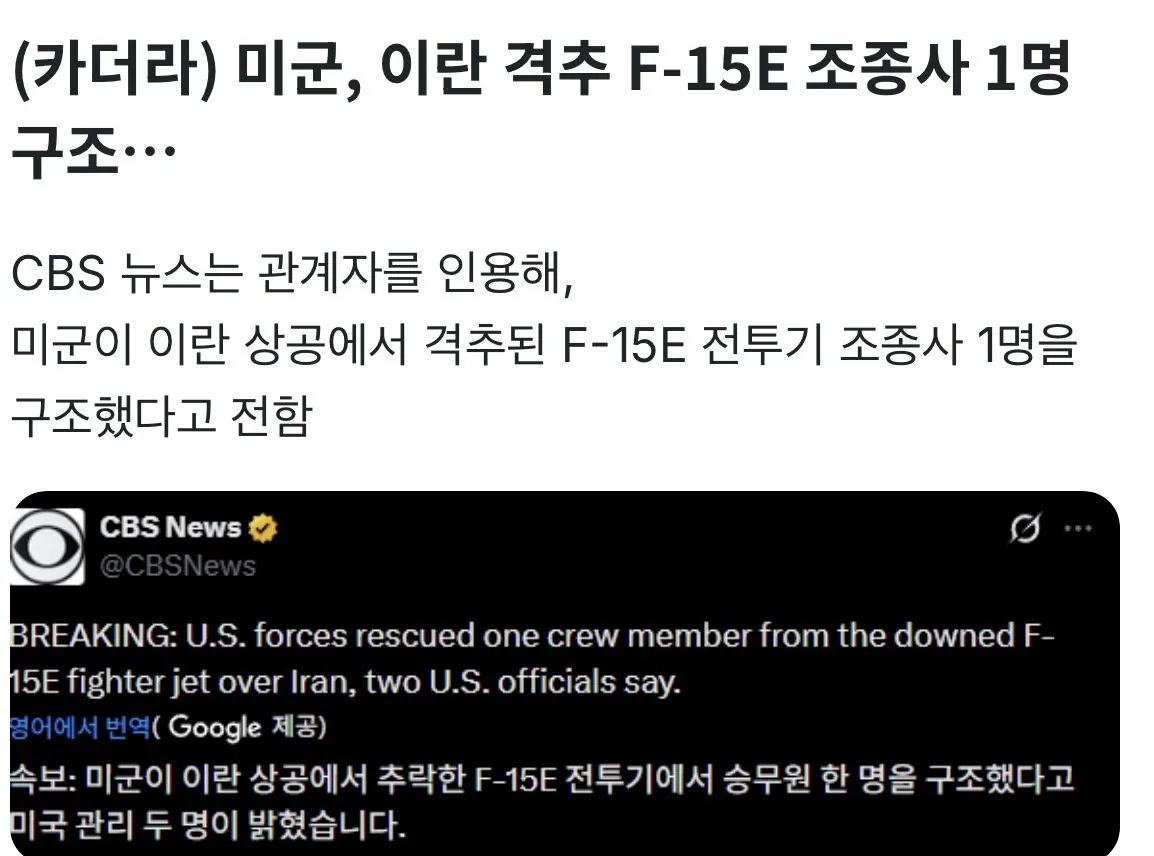 F-15E 조종사 무사히 구조됐다고?