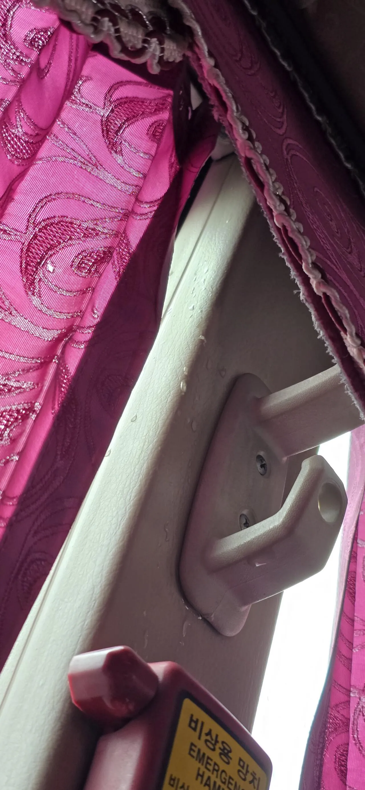 버스 천장에서 계속 떨어지는 물 때문에 옷이 완전 젖었다