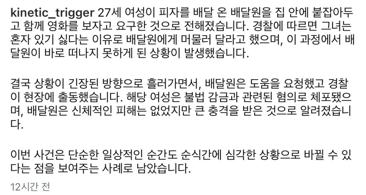 배달원을 집에 감금한 20대 여성 검거