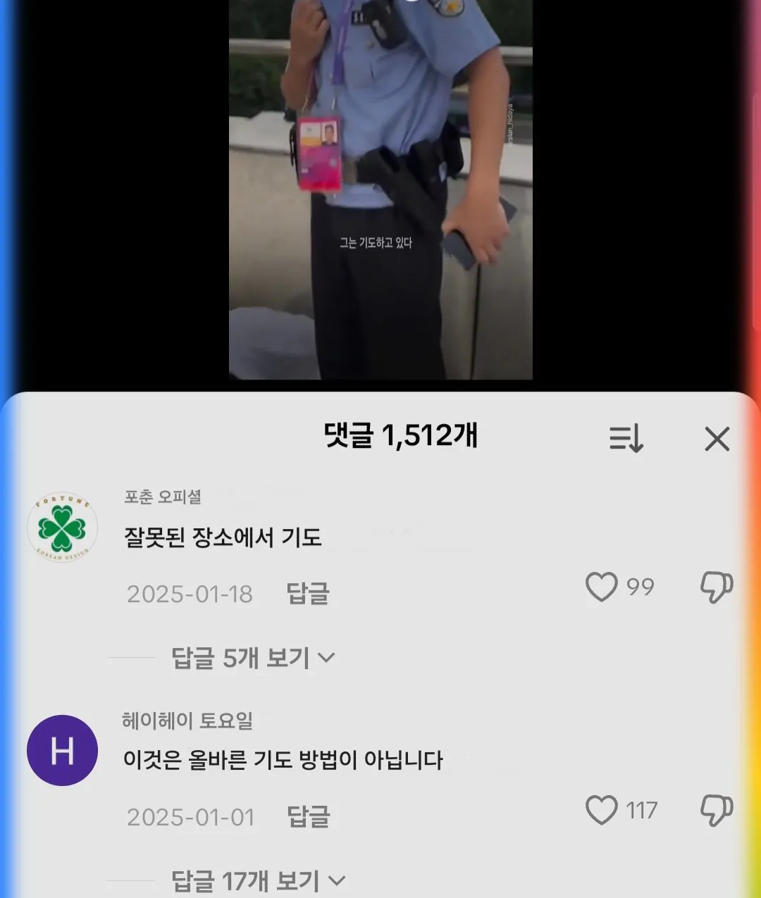댓글 보면 다른 무슬림들은 남의 나라 길바닥에서 기도하는 건 좋게 보질 않는 듯